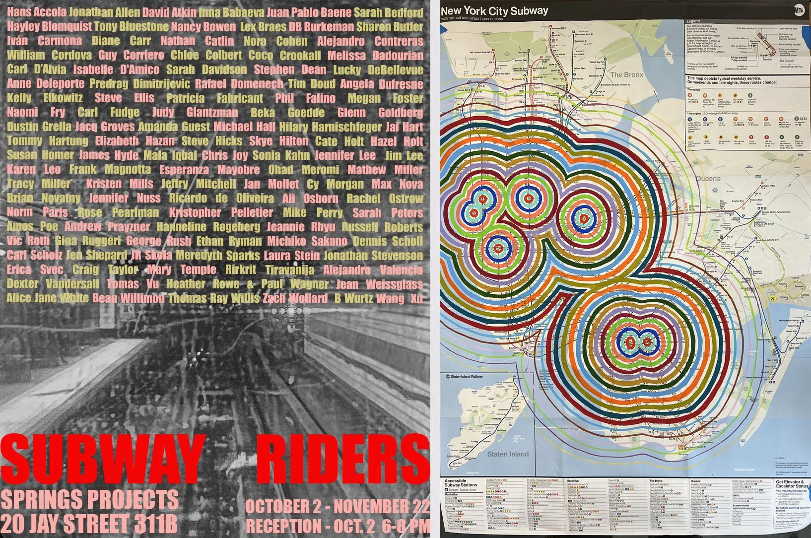 Looking forward to Subway Riders, at Springs Projects. Curated by Tommy White and with a nod to Amos Poe, the show includes 115 works made on or using the NYC transit map. My piece, Centers of Gravity, focuses on subway stations where I have either lived or worked.
