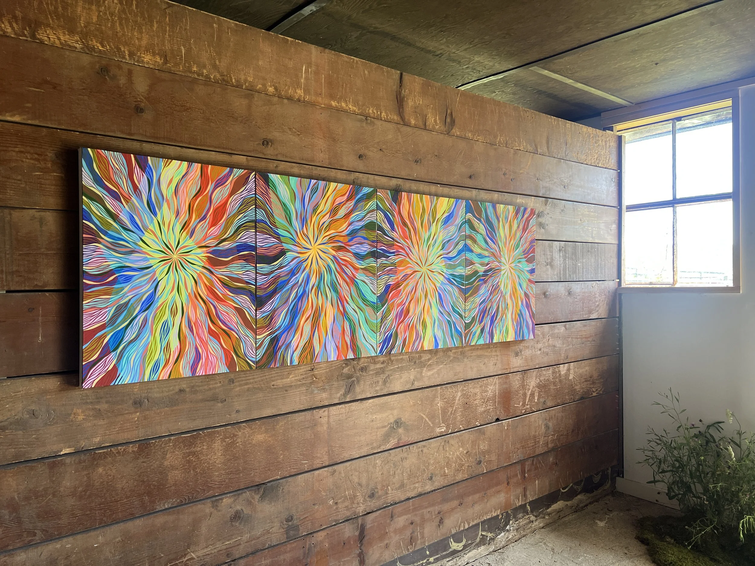 I had such an amazing time at Upstate Arts Weekend this summer. I will have work in two installations. One at The Barn on Berme, in a converted horse barn in Kerhonkson NY. I was be part of a great group of artists including Manju Shandler, Julie Peppito, Suzanne Furlong Kiggins, and Michela Martello. Each artist had our own stall in a horse barn, a mini-solo as it were. Manju made it into an amazing weekend, with sound baths and a DJ opening night.
